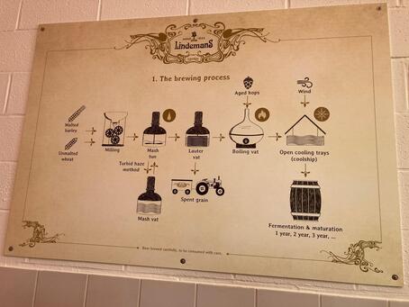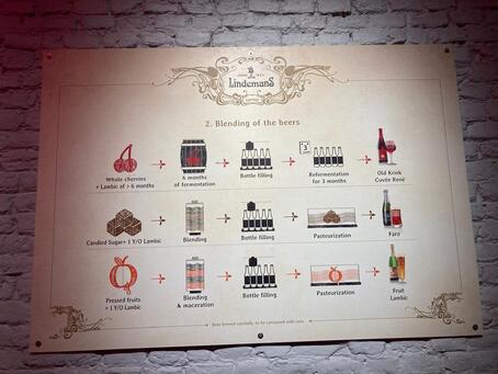The illustrations below from the brewhouse at Lindemans Brewery clearly summarise the brewing process as well as the blending process for various Lambic and Geuze specialities: