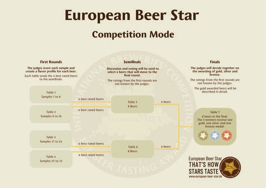 The following picture illustrates the competition mode of the European Beer Star with an examplary category with 32 entries.